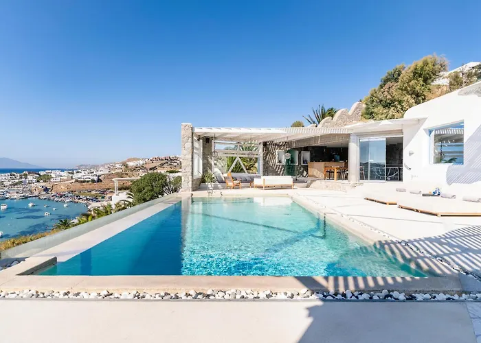 Villa Delta Ornos - Mg Villas Mykonos Mykonos Town располагаются менее чем в 2 км от улицы Матоянни, а для активных гостей предусмотрены пинг-понг. В вилле есть бесплатная чaстная парковка и терраса с видом на море.